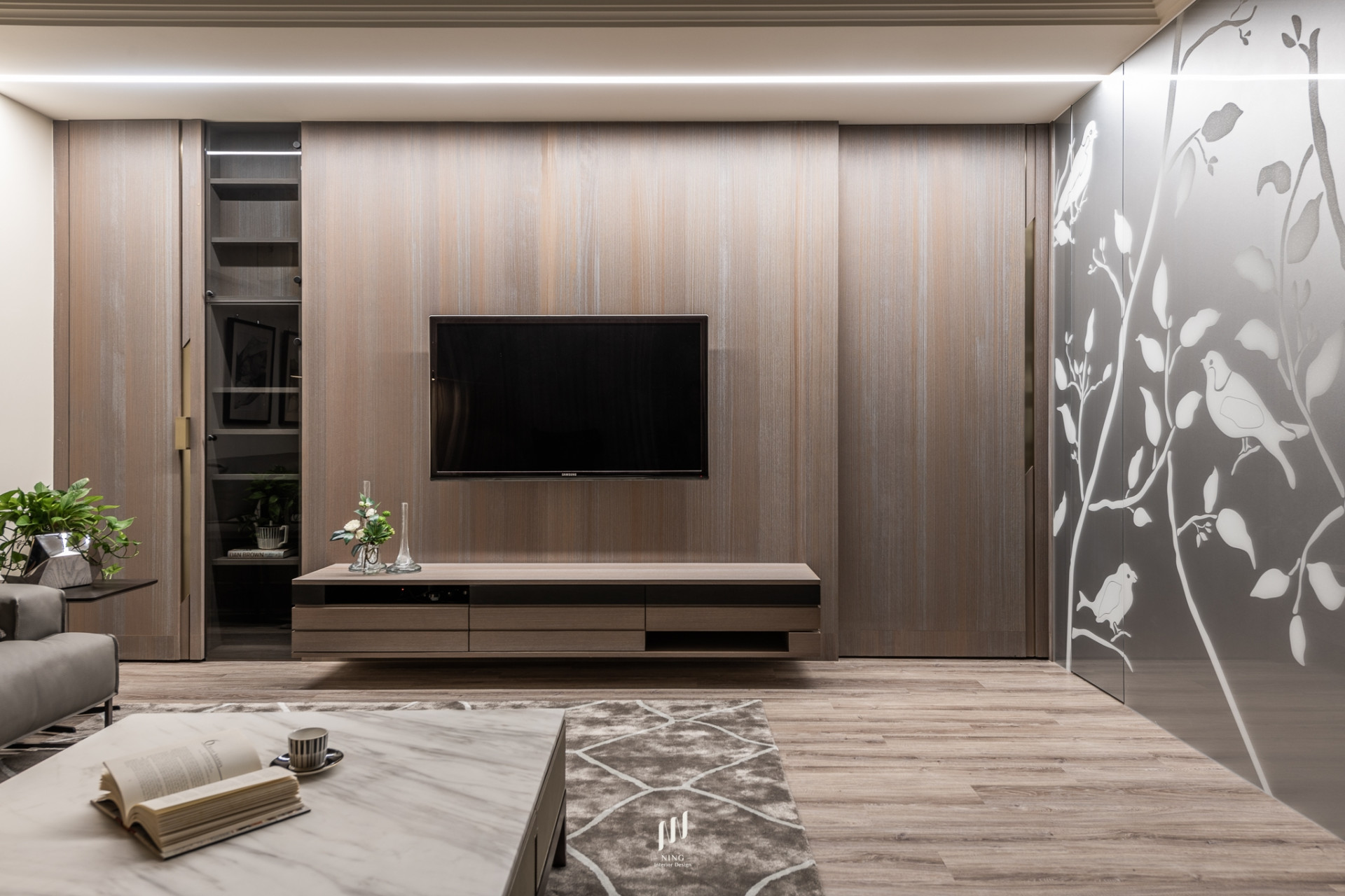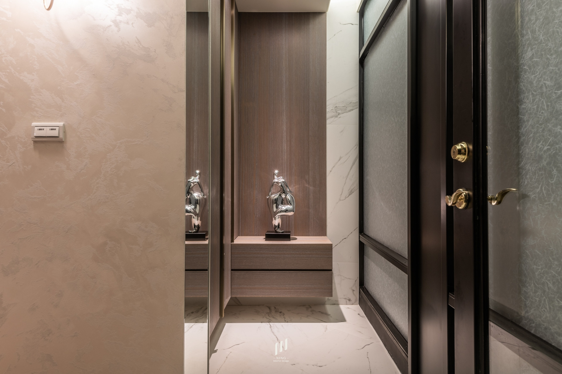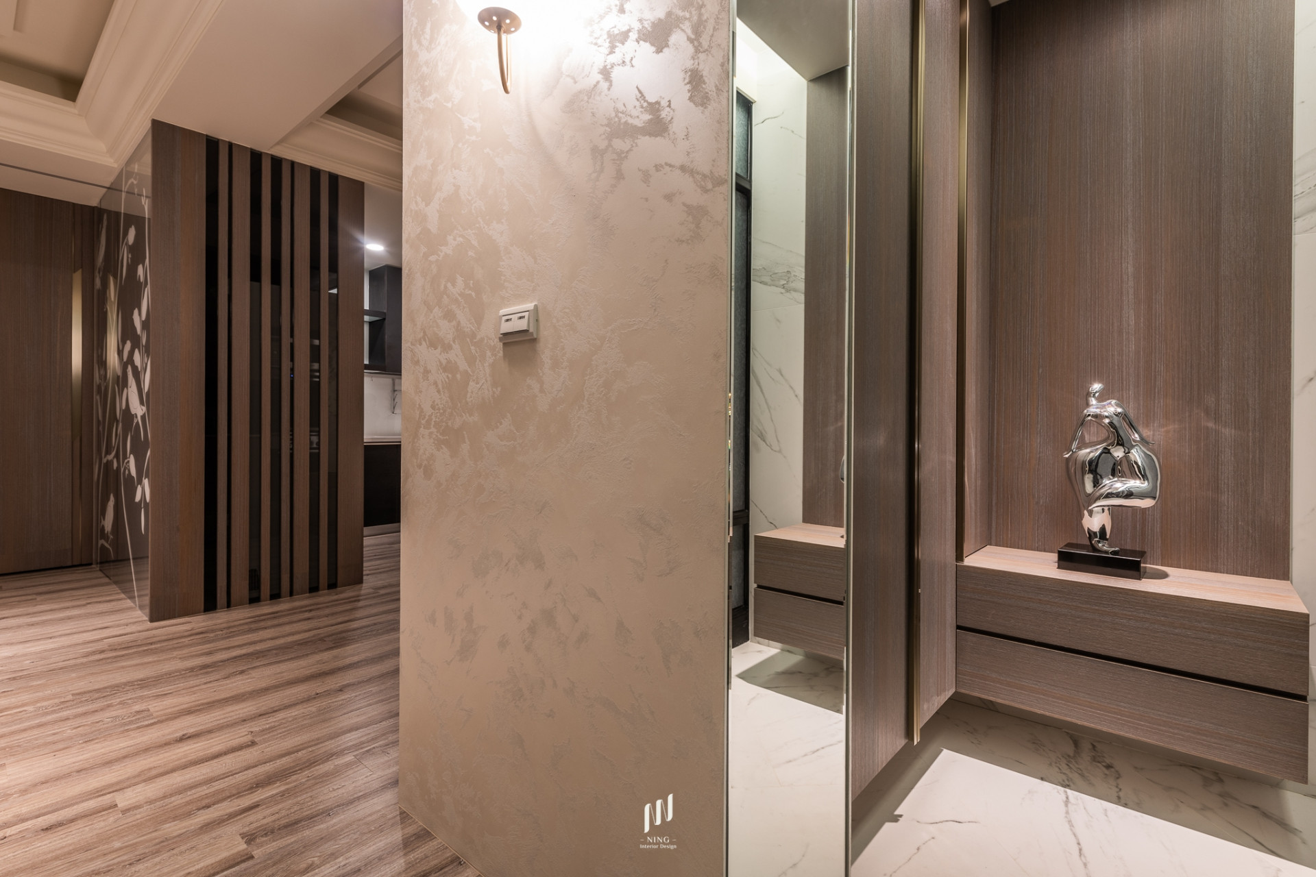 以大地色為基調,木皮、石紋與特殊漆交織出低調的高級質感。