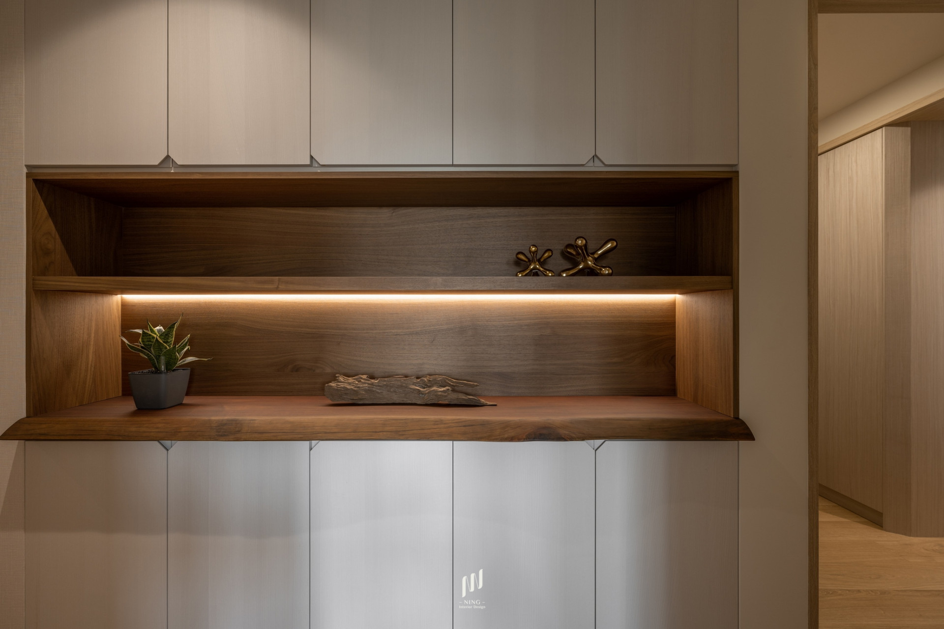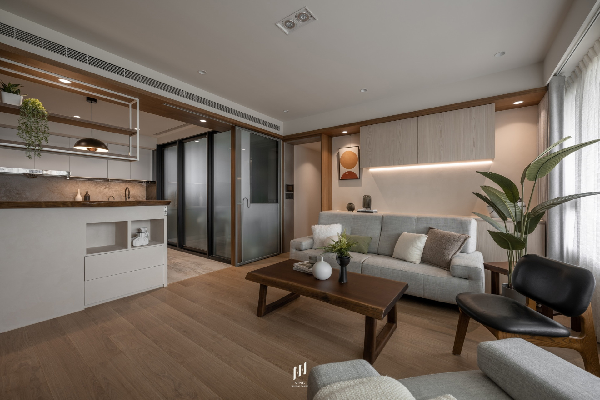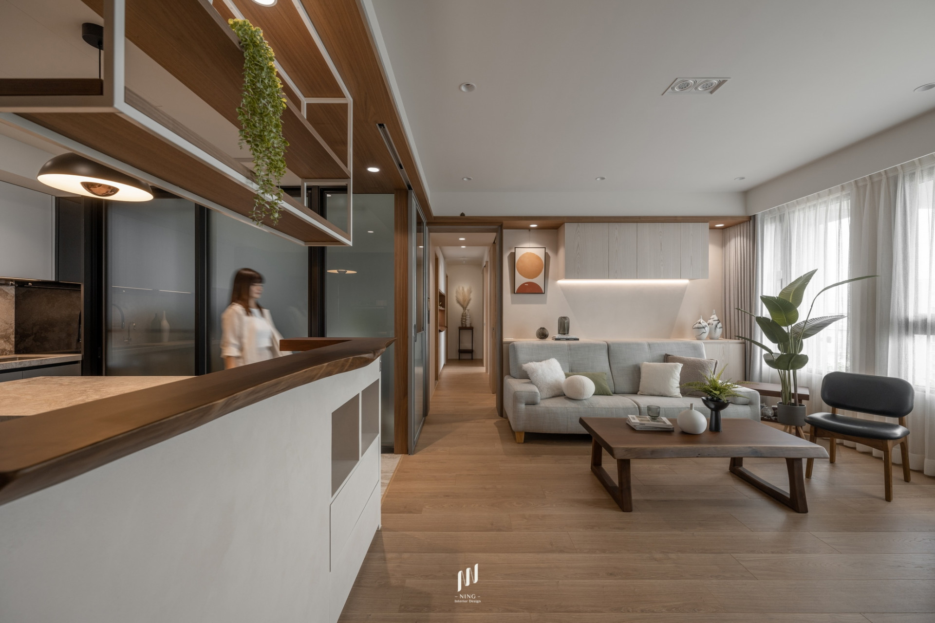 業主個性嚴謹,重視風水,尋求內斂穩健的居住環境。在室內設計的選擇上,日式風格深受青睞。設計師透過大量運用原木元素,精心營造出穩重且具真實質感的室內空間。