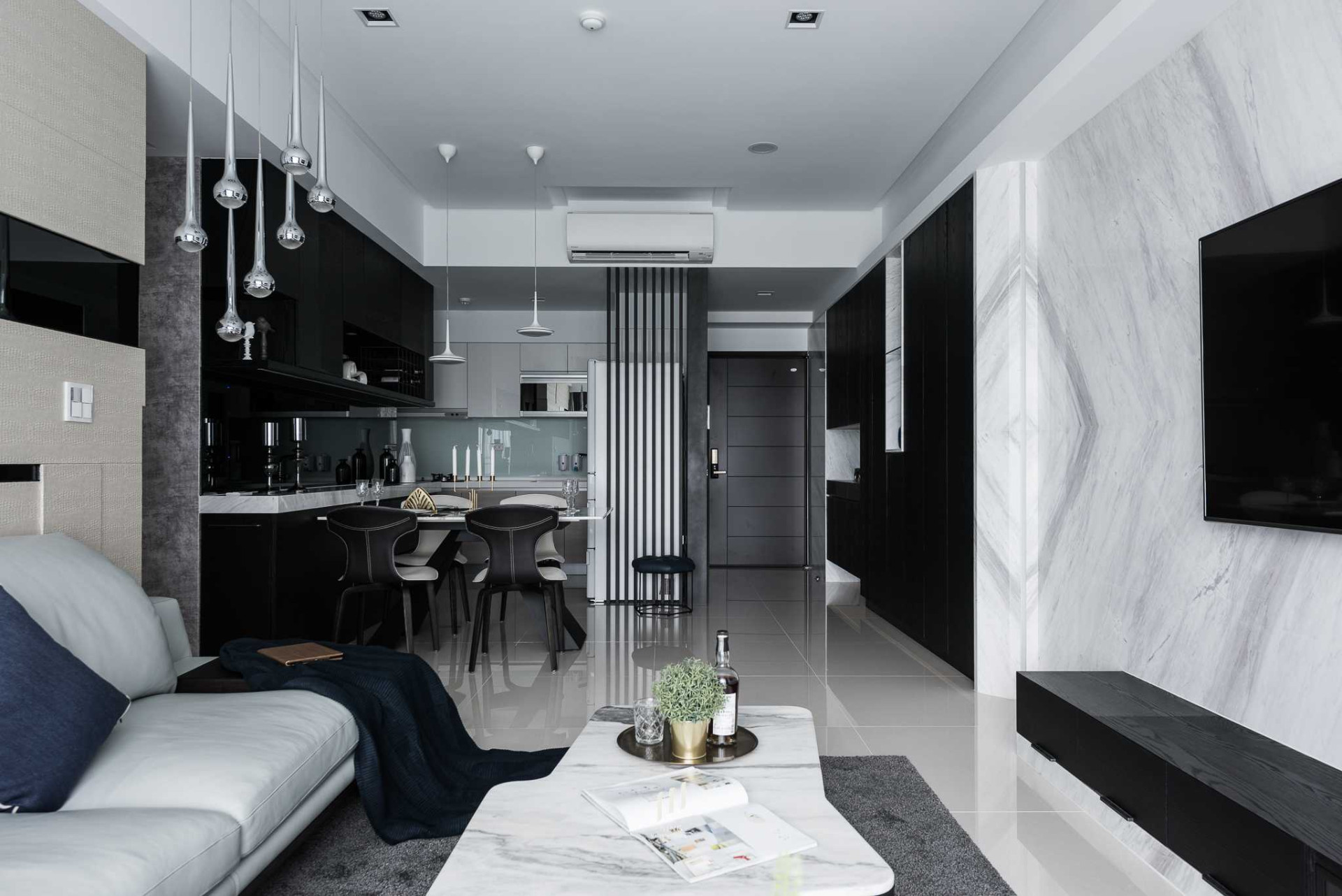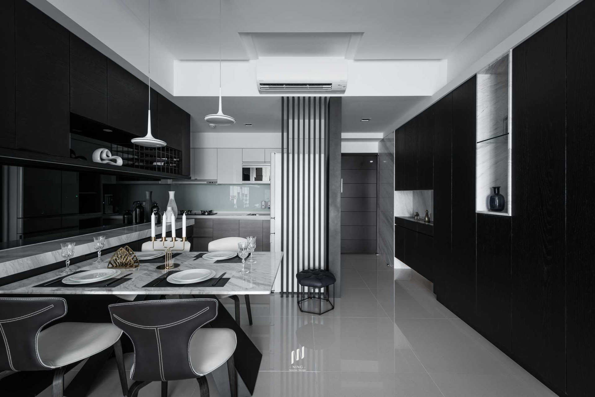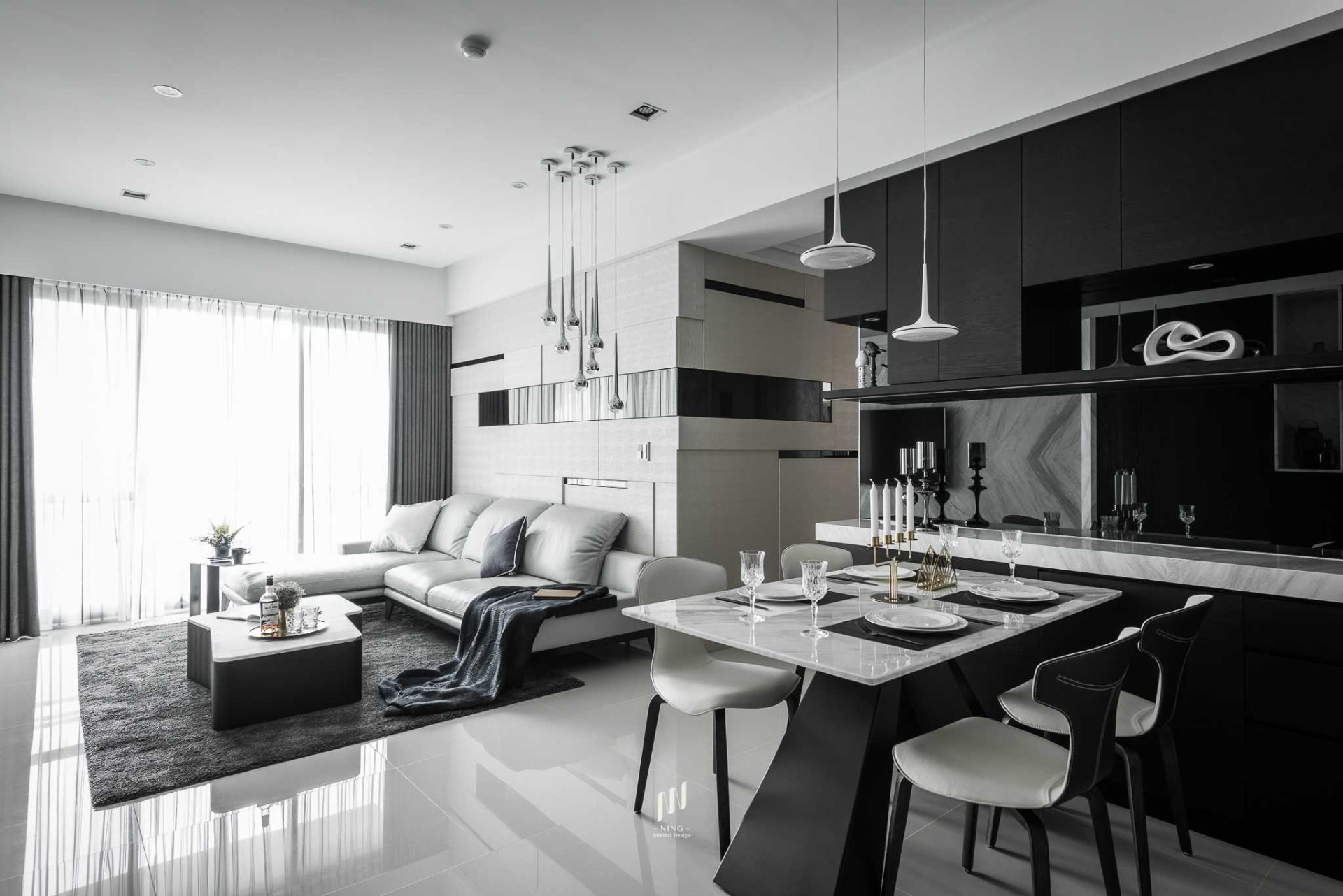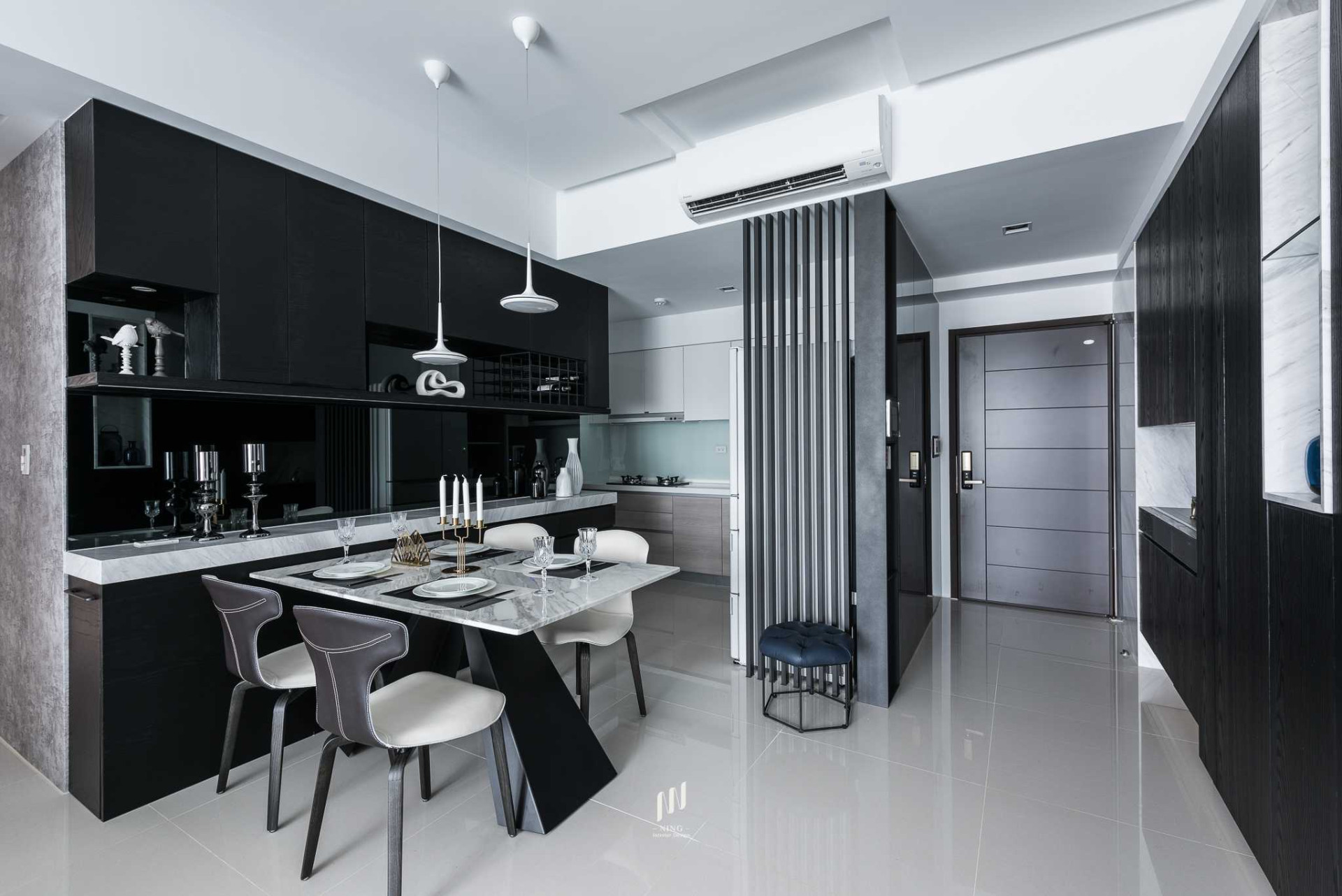深色櫥櫃與簡約吊燈,讓烹飪的時光多了一點儀式感。