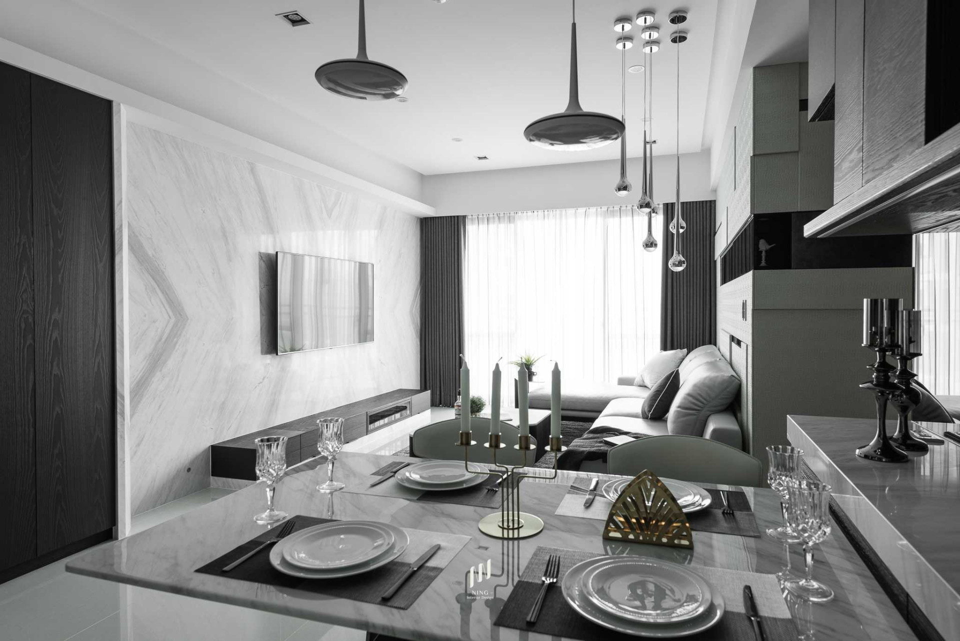餐廳與廚房採開放式設計,大理石餐桌不僅適合日常用餐,也能隨時變身成朋友聚會的重心。