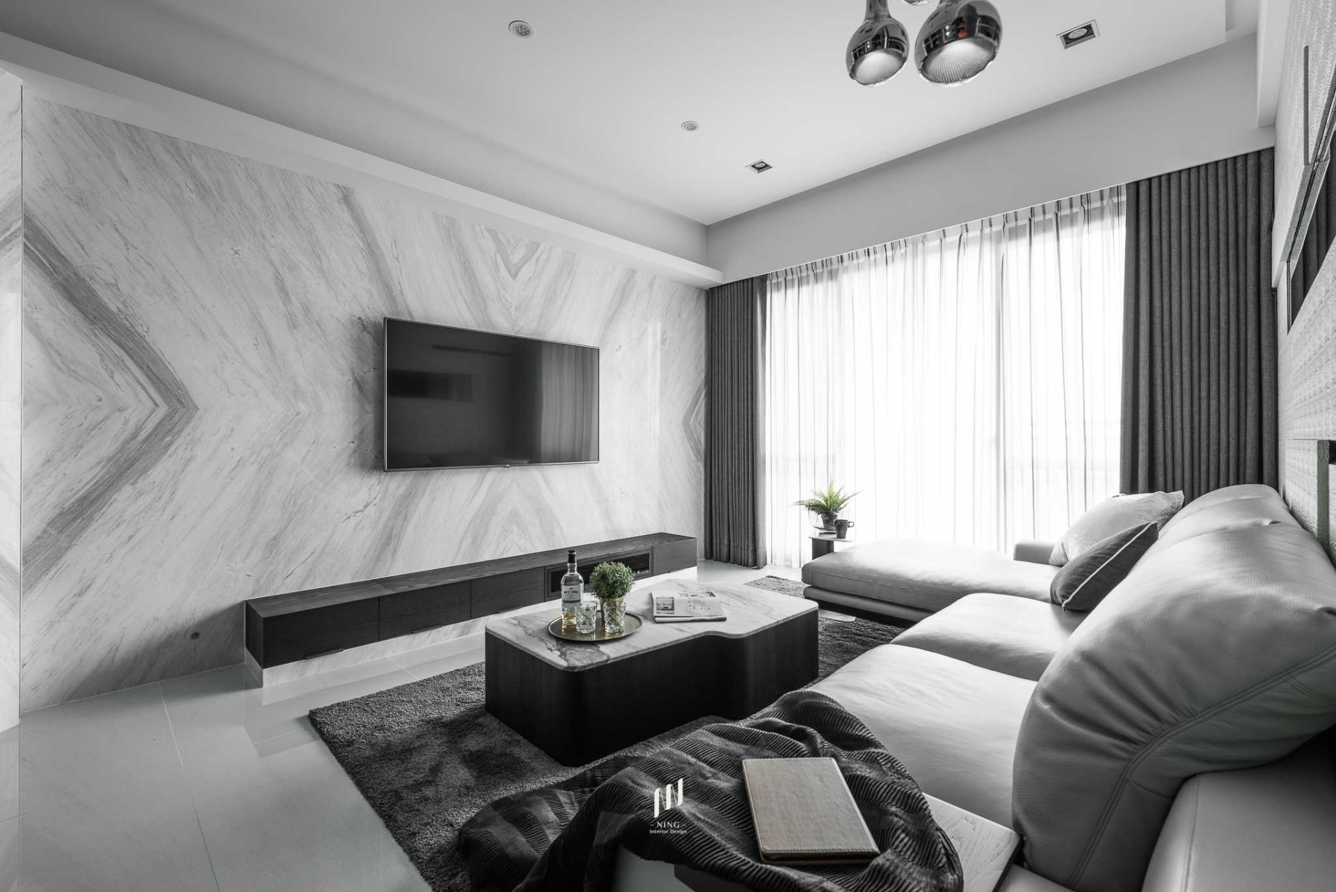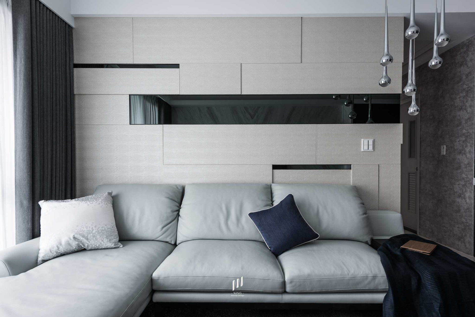 客廳的大型淺灰沙發,成了全家人放鬆的好地方,不論是窩著追劇、聊天,還是午後打個盹,都很自在。牆面巧妙結合幾何線條與鏡面設計,不僅讓空間更有層次,也讓視覺延伸得更開闊。