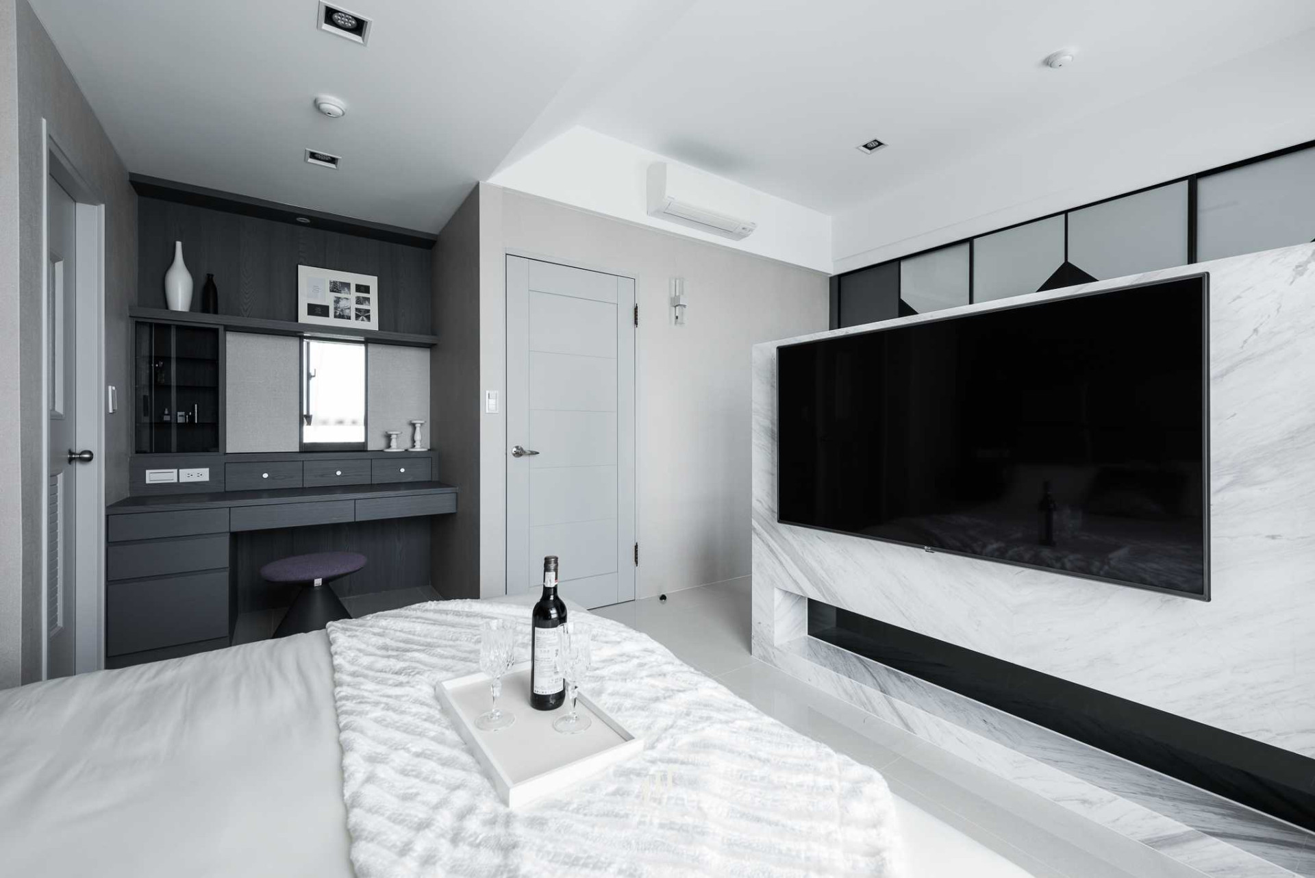 臥室則延續柔和色系,布藝床頭、柔軟寢具與大片窗景,讓人一進門就能卸下疲憊。