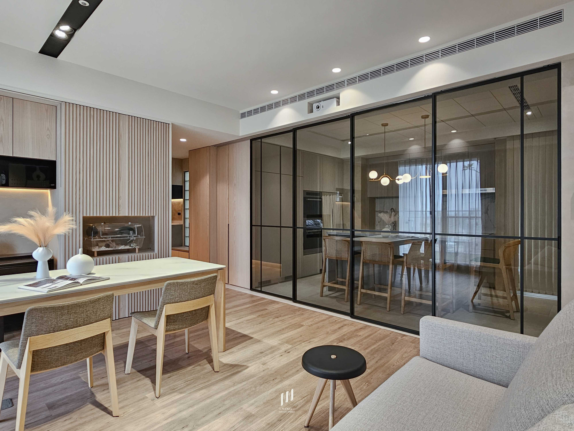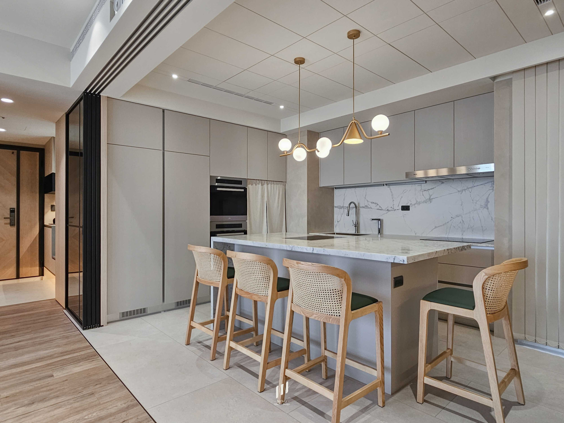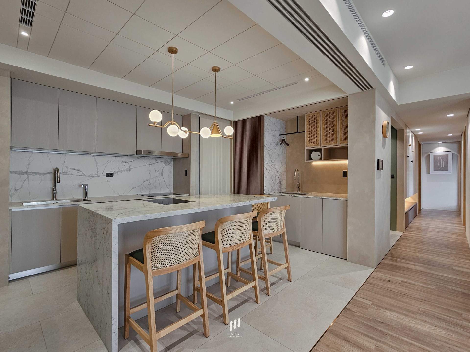 多功能事務區以巧妙的方式融合實用性與美感。這個區域特別注重家務的便利,貼心規劃了可安置洗衣機和烘衣機的區域,將日常生活細節融入空間設計。不僅簡約而現代,更將功能性提升至一種藝術。